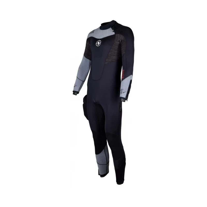 - Fermeture à glissière à l’avant du col avec gousset soudé pour un confort accru avant ou après la plongée