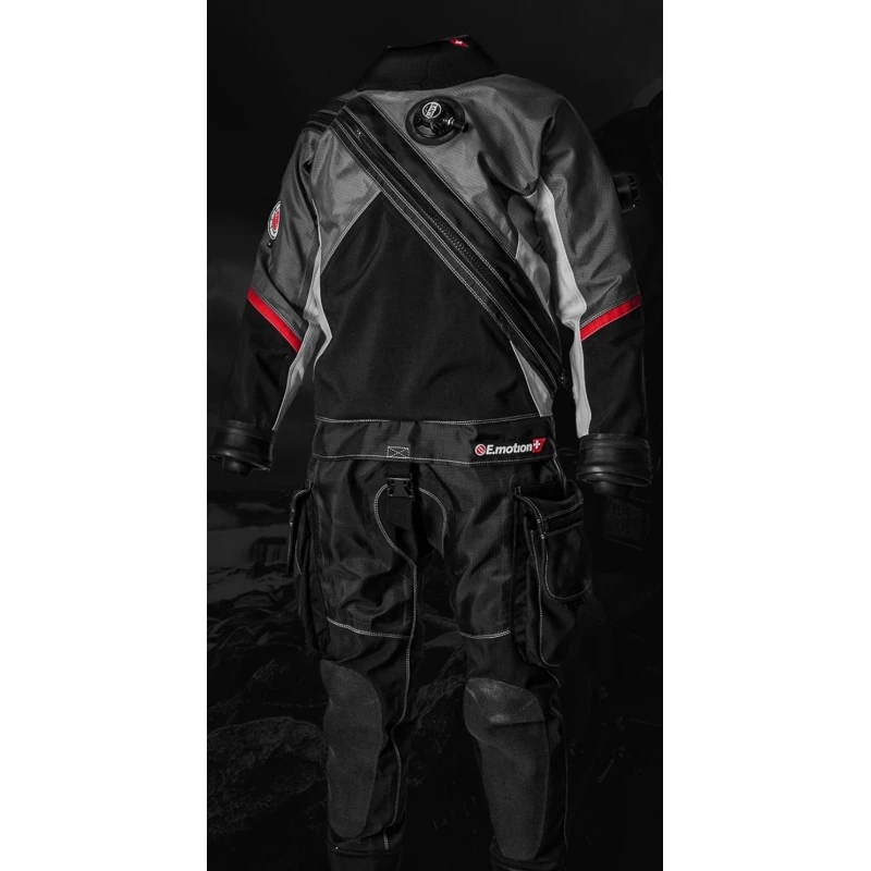 - En standard équipé de: poitrine grise, gores latéraux argentés, passepoil rouge, fermeture éclair aquaseal à l’avant, placement de l’épaule droite à la fermeture à glissière en plastique de la hanche gauche recouverte d’un rabat zippé