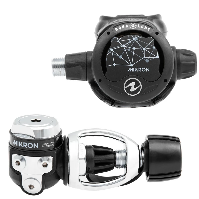 - Pourvu de l’embout Comfo-bite™ breveté d’Aqua Lung ainsi que d’une attache d’embout réutilisable. Le Mikron est également livré avec un embout Comfo-bite™ plus petit, conçu pour les petites bouches et doté d’un mors amovible en silicone qui vient se coller au palais.