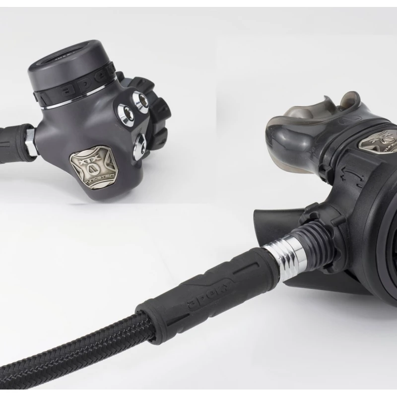 - Les flexibles tressés sont montés en standard sur tous les détendeurs. Ils sont plus légers, plus souple et plus résistant.