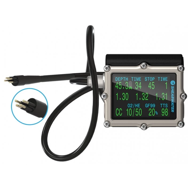 L’intégration de l’air est standard avec jusqu’à quatre émetteurs Shearwater pour personnaliser une solution allant du circuit ouvert au recycleur et à la surveillance de la pression des gaz de secours.