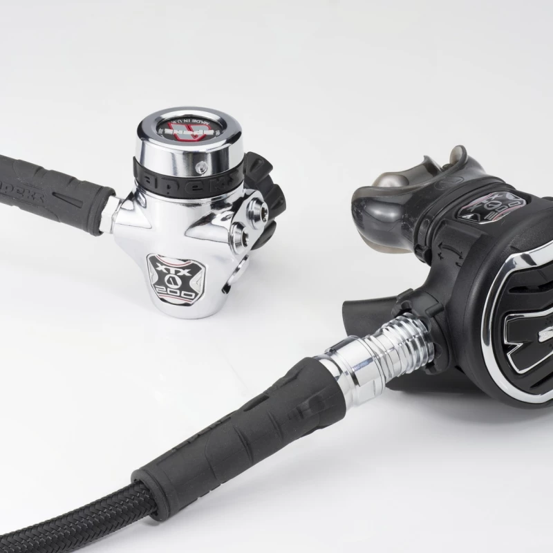 Il permet de modifier l’injection grâce à un volet de venturi et bénéficie d’un bouton de réglage de sensibilité. Le premier étage est équipé d’une chambre sèche qui rend le détendeur particulièrement adapté à la plongée en eaux froides. Toutes les sorties sont parfaitement placées et assurent un positionnement idéal des flexibles. L’ XTX 200 offre un confort respiratoire exceptionnel dans toutes les conditions et