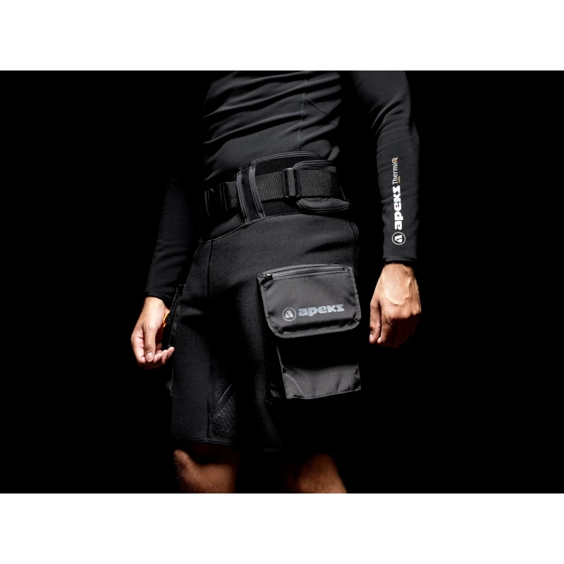 - Grande poche de style combinaison étanche qui permet de ranger des articles tels que le masque de secours et les bobines.