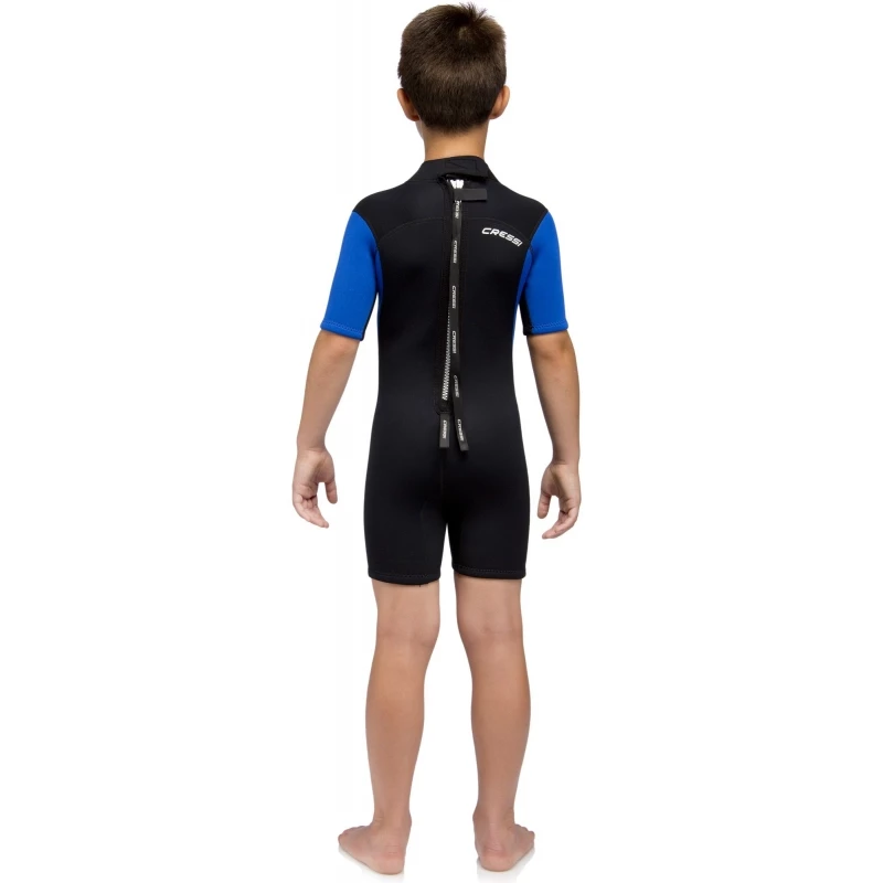 - Une pièce sans cagoule, manche et short, en néoprène doublé deux faces 2,5 mm, parfaite pour la plongée avec tuba, la natation, les mers tropicales et pour tous les sports aquatiques.